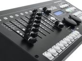 |  | Console with motorized faders, color & motion effects (24 devices/34 channels) Pult mit Motorfadern, Farb- & Bewegungseffekten (24 Geräte/34 Kanäle) - DMX controller for DMX light effect units such as moving heads, scanners and LED spot lights with RGBW color mixture