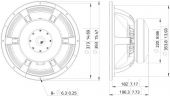 | Power: | Program: 3000W Rated: 1500W AES | | Frequency range: | 40 - 1000 Hz | | Sensitivity: | 96 dB | | Impedance: | 8 ohms | | Speaker: | Woofer 15" with ferrit magnet Basket material: aluminum Voice coil lows 4.5" | | Weight: | 15.45 kg |  |