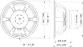 | Power: | Program: 3000W Rated: 1500W AES | | Frequency range: | 30 - 1000 Hz | | Sensitivity: | 96 dB | | Impedance: | 8 ohms | | Speaker: | Woofer 18" with ferrit magnet Basket material: aluminum Voice coil lows 4" | | Weight: | 16.36 kg |  |