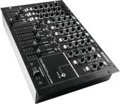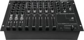 | Power supply: | 115/230 V AC, 50/60 Hz | | Power consumption: | 25 W | | Protection class: | Protection class I | | Power connection: | Mains input via IEC connector (M) mounting version power supply cord with safety plug (provided) | | Frequency range: | 20 - 20000 Hz | | S/N ratio: | >82 dB line | | THD: | Line <0.05 % at 1 kHz | | Housing color: | Black | | Control elements: | Cue mix split function, power switch, crossfader, regular talkover, FX send/returne control | | Status LED: | Power, chanal level meter, switchable master level meter, CUE, chanal source; peak, ON AIR, routing | | Connections: | Input: microphone via 3 x 3-pin XLR/6.35mm jack (F) combination socket (mounting version) Input: line via 6 x stereo RCA Input: line/phono via 2 x stereo RCA Input: AUX via 2 x 6.3-mm-jack (bal.) Input: AUX via 1 x 3.5 mm jack (stereo) mounting version Input: FX via 1 x 6.3 mm jack socket (stereo) mounting version Output: master via 4 x 3-pin XLR Output: master via 2 x stereo RCA Output: zones via 1 x 3-pin XLR Output: rec. via 1 x stereo RCA Output: subwoofer via 1 x 3-pin XLR Output: FX via 1 x 6.3 mm jack socket (stereo) mounting version Output: headphones via 1 x 3.5 mm jack (stereo) mounting version | | Channels: | Input chanel: 2 x stereo with line-AUX switch via RCA or jack plug, channel control via 100mm fader, 3-band tone control EQ, gain control, CUE switch, crossfader selector switch Input chanel: 2 x stereo with line-line/phono switch via RCA, channel control via 100mm fader, 3-band tone control EQ, gain control, CUE switch, crossfader selector switch Input chanel: 1 x stereo with line-line switch via RCA, channel control via 100mm fader, 3-band tone control EQ, gain control, CUE switch, crossfader selector switch Microphon chanal: 3 x mono via Combination socket (XLR/jack), channel control via 60mm fader, 3-band tone control EQ, gain control, adjustable single-knob compressor, ON AIR switch, FX routing switch Master output: 1 x stereo via XLR or RCA, channel control via rotary dial, level attenuator Master output: 1 x mono + stereo via RCA or jack plug, channel control via rotary dial, level attenuator, stereo/mono switch Zone output: 1 x mono via XLR, channel control via rotary dial, source selector, level attenuator, low cut switch Subwoofer output: 1 x mono via XLR, level attenuator, hi-cut control Headphones output: 1 x stereo via jack, channel control via rotary dial, cue mix split function | | Housing design: | (19") 48.3 cm rack installation 7 U | | Dimensions: | Width: 48.3 cm Depth: 10.6 cm Height: 32.8 cm | | Weight: | 6.00 kg |