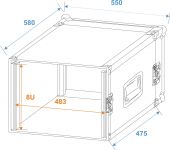 | Maximum load: | 50 kg | | Aluminum profile frames: | 30 mm | | Case handle: | 2 pc/pcs | | Lock: | Butterfly lock: 4 pc/pcs | | Material: | Plywood multi-layer glued, 9 mm | | Color: | Black, laminated | | Front panel width: | 19" | | Mounting height: | Approx. 35.5 cm (8 U) | | Mounting depth: | 470 mm | | Housing design: | 8 U | | Dimensions: | Width: 54.5 cm Depth: 64 cm Height: 40.5 cm | | Weight: | 16.45 kg |