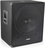 | Product colour | Black | | Supplied features | Speaker pole mount | | Input connections | RCA, XLR (3-pin) | | Speaker type | Active (amplified) | | Output power: Max | 1000W | | Output power | 500W | | Diameter woofer | 18" | | Frequency response | 30 - 120 Hz | | Impedance | 8 Ohm | | Signal-to-noise ratio | >80dB | | SPL max | 119dB | | THD | <0.05% | | Power supply | 220-240VAC 50Hz | | Dimensions (L x W x H) | 450 x 565 x 665mm | | Weight (kg) | 24,60 | pdf