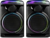| Product colour | Black | | Playback options | BT streaming, USB, Line input, Microphone (input) | | Input connections | 3.5mm Jack, 6.3mm Jack, Optical, USB | | Output power: Max | 120W | | Tweeter type | Cone | | Diameter woofer | 5.25" | | Magnet type | Ferrite | | Power supply | 100-240VAC 50/60Hz | | Dimensions (L x W x H) | 192 x 190 x 305mm (Single Speaker) | | Weight (kg) | 5,95 | | Included accessories | Handheld microphone (wireless), Remote control (wireless), Power cable, Speaker cable | pdf