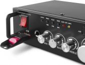 |  | With the AV340 2x 50W nicely designed mini amplifier you will take your house party to a next level and it will turn your party into a karaoke festival. Featuring a MP3 player with LED indication, USB port, Bass/Treble control and a microphone input. Also perfect for applications as HiFi and background music. - Amplifier with 2x 50W digital amplifier