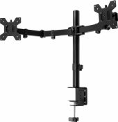 |  | The CMA series is a series of efficient monitor arms, which double joint is able to be tightened, so that you can set exactly in which position you want the monitors. Constructed of high grade steel, this rugged mount built to resist scratches and supports screens up to 8kg and 32" in size. We made a detachable VESA panel, just simply screw the monitor on the panel and slide back to the mount. Full motion structure allows smooth, effortless rotating and positioning for any direction, making it easy to find the perfect viewing angle. You can also adjust the monitor height vertically to a desired position. The easy cable clip is included for keeping cables organized and protected. VESA compatible with 75x 75 and 100x 100. - Monitor stand for two monitors