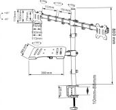 | Product colour | Black | | Screen size | 13" - 32" | | VESA | 75x75, 100x100 | | Dimensions: Shelf | 300 x 265mm (WxD) | | Arm full extension | 358mm | | Pole height | 800mm | | Table thickness | 10 - 88mm | | Tilt range | +90°~-90° | | Swivel range | +90°~-90° | | Screen rotation | 360° | | Max. weight load per piece | 8kg | | Weight (kg) | 5,30 |