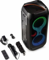If you want rugged durability and endless connectivity then the Core Party Speaker series will get the party started, wherever you are! With a synced light show in the front and a clear control panel on top, fantastic stereo sound and a built-in battery, this is a speaker that looks great and sounds even better! The Core Party Speaker, which is characterized by advanced Wireless BT Technology will bring you high-quality music and guarantees a crystal clear signal. Pairing your phone or other BT enabled device is super easy! So, if you are looking for high power, big sound and a spectacular lightshow; Core Party Speaker The party starter!