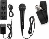 Handheld microphone (wired), Remote control (wireless), Power adapter