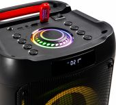 If you want rugged durability and endless connectivity then the Core Party Speaker series will get the party started, wherever you are! With a synced light show in the front and a clear control panel on top, fantastic stereo sound and a built-in battery, this is a speaker that looks great and sounds even better! The Core Party Speaker, which is characterized by advanced Wireless BT Technology will bring you high-quality music and guarantees a crystal clear signal. Pairing your phone or other BT enabled device is super easy! So, if you are looking for high power, big sound and a spectacular lightshow; Core Party Speaker The party starter!