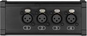 |  | The PDConnex Splitter Boxes are ideal for a wide range of applications including stage sound, lighting, and recording studio settings. With 4 channels and 3 pins XLR-connectors, this compact multi-network adapter can be used to connect a variety of audio devices to a single network cable up to 100 meters long, without the need to download any software or drivers. Also includes a location to thread on a clamp or adapter with an M10 thread hole. Plug-and-play. - Stagebox with 4 XLR connections (female) to RJ45
