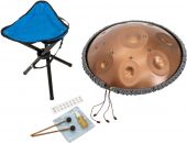 | Tuning: | D celtic minor | | Tones: | 9 | | Material: | Stainless steel | | Color: | Gold | | Diameter: | 22" | | Dimensions: | Height: 27,5 cm Diameter: Ø 57 cm | | Weight: | 5,50 kg |     |  |  |  | |