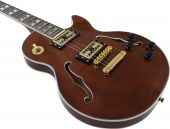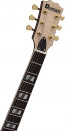 | Pickup: | 2 x humbucker | | Version: | Right hand version | | Neck: | Glued neck made of mahogany, Fingerboard: Blackwood 22 frets | | Body: | 4/4 LP-form, semi-acoustic Mahogany | | Scale length: | 630 mm | | Nut width: | 43 mm | | Number of strings: | 6 | | Regulator: | 2 x volume, 2 x sound | | PU switch: | 1 x 3-way-switch | | Bridge: | Tune-o-matic | | Top: | Maple | | Hardware: | Golden | | Color: | Nature, high-gloss | | Weight: | 4.25 kg | | Body | | | Material: | Limewood |   |  |  |  | |
