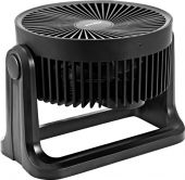 | IP classification: | IP20 | | Protection class: | Protection class III | | Power connection: | Battery/battery pack built-in Mains input via USB C (W) mounting version power supply cord for USB A mains connection (provided) | | Battery pack type: | 1 x lithium ion 3.7 V, 4000 mAh, 14.8 Wh | | Battery pack: | Battery operation up to 11.5h depending on program used Recharging time 4h | | Speed: | 850 RPM - 1350 RPM | | Maximum airflow: | 528 m³/h | | Housing color: | Black matte | | Connections: | Input: 1 x USB C (W) mounting version 5 V Output: 1 x USB A (F) mounting version 5 V | | Recessed carrying handle: | 1 pc/pcs | | Transport aid: | 4 x rubber feet | | Material: | Plastic | | Dimensions: | Width: 27.5 cm Depth: 15.3 cm Height: 25.5 cm Diameter: Ø 23 cm | | Weight: | 1.00 kg | | USB cable | | | Connector type: | USB A (M); USB C (M) |