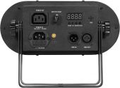 | Power supply: | 100-240 V AC, 50/60 Hz | | Power consumption: | 20 W | | IP classification: | IP20 | | Power connection: | Mains input via IEC connector (M) mounting version power supply cord with safety plug (provided) | | Power output: | 1 x IEC connector (F) mounting version | | Fuse: | T 1 A fuse replaceable | | Lamp type: | LED lamp | | DMX channels: | 8; 22 | | DMX input: | 3-pin XLR (M) mounting version | | DMX output: | 3-pin XLR (F) mounting version | | Cooling: | Passive convection cooling | | Control: | Stand-alone; DMX; sound to light via microphone; master/slave function; IR remote control | | Preprogrammed in: | Light Captain | | Projection: | Flicker-free | | Beam angle: | 80° | | Beam angle (1/2 peak): | 80° | | Housing color: | Black | | Attachment system: | Double bracket | | Dimensions: | Width: 25.0 cm Depth: 14.6 cm Height: 17.9 cm | | Weight: | 1.70 kg | | Noise classification: | Class 0 (no noise at all); Class 0 (no noise at all) | | Light effect | | | LED type: | 12 x high-power R/G/B/W/A/UV | | Strobes | | | LED type: | 36 x 0.2 W 3in1 TCL RGB | | Flash rate: | 0 - 20 Hz | | Legal specifications | | | Special product: | Not designed for household room illumination | | Intended use: | Show effect lighting |