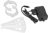 - 1 x device, 1 x user manual, 1 x external mains adapter, 1 x remote control, 2 x mounting bracket, 3 x stand, 1 x battery