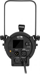 | Power supply: | 100-240 V AC, 50/60 Hz | | Power consumption: | 60 W | | IP classification: | IP20 | | Protection class: | Protection class I | | Power connection: | Fixed power supply cord with safety plug | | Lamp type: | LED lamp | | LED type: | 1 x 60 W COB (chip-on-board) CW/WW | | Equipment: | Zoom manual; focus manual | | DMX channels: | 2; 5 | | DMX input: | 3-pin XLR (M) mounting version | | DMX output: | 3-pin XLR (F) mounting version | | Cooling: | Temperature-controlled fan | | Control: | Stand-alone; master/slave function; DMX; RDM | | Preprogrammed in: | Light Captain | | Projection: | Flicker-free | | Beam angle (1/2 peak): | 9 - 25° | | Color temperature: | 3200K - 5600K adjustable | | Color rendering index (CRI): | 97 Ra | | Lamp life: | 50000 h | | Luminous flux: | 4500 lm | | Housing color: | Black matte | | Attachment system: | Mounting bracket | | Display type: | Multicolor OLED display | | Material: | Aluminum casting; metal | | Dimensions: | Length: 42.5 cm Width: 16.0 cm Height: 25.5 cm Diameter: Ø 11.5 cm | | Weight: | 3.38 kg | | Noise classification: | Class 1 (very slight noise, suitable for noise-sensitive environments) | | Energy efficiency class (A - G): | F | | EPREL-Nr: | 1597557 | | Mounting bracket | | | Diameter mounting holes: | 1 x Ø12mm | | Material: | Metal, 3 mm | | Gobo holder | | | Gobos: | Outside diameter 37mm Image diameter 25mm | | Material: | Aluminum, 0.5 mm; plastic | | Dimensions: | Diameter: Ø 3 cm |     |  |  |  | |