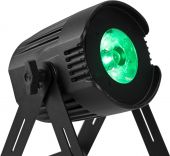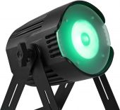 LED spotlight with RGBW color mixing, IR remote control and 2 frost filters