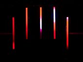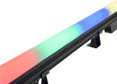 | Power supply: | 100-240 V AC, 50/60 Hz | | Power consumption: | 30 W | | IP classification: | IP20 | | Power connection: | Mains input via P-Con (blue), mounting version power supply cord with safety plug (provided) | | Power output: | 1 x P-Con (gray), mounting version | | Lamp type: | LED lamp | | LED type: | 96 x SMD 5050 3in1 TCL RGB (homogenous color mix) | | Flash rate: | 0.25 - 11 Hz | | DMX channels: | 3; 5; 8; 48; 96 | | DMX input: | 3-pin XLR (M) mounting version | | DMX output: | 3-pin XLR (F) mounting version | | Cooling: | Passive convection cooling | | Control: | Stand-alone; DMX; sound to light via microphone; master/slave function | | Preprogrammed in: | LED PC-Control 512; Light Captain | | Beam angle: | 120° | | Beam angle (1/2 peak): | 120° | | Housing color: | Black | | Attachment system: | Mounting bracket | | Display type: | 4 digit 7-segment LED display | | Material: | Plastic; metal | | Dimensions: | Length: 99.9 cm Width: 5.9 cm Height: 15.3 cm | | Weight: | 2.10 kg | | Noise classification: | Class 0 (no noise at all) | | Power cord | | | Cable construction: | 3 x 1.0 mm² H05VV-F | | Cable length: | Approx. 1.2 m | | Mounting bracket | | | Diameter mounting holes: | 2 x Ø12mm; 1 x Ø11mm | | Material: | Metal, 2.5 mm | | Legal specifications | | | Special product: | Not designed for household room illumination | | Intended use: | Show effect lighting |