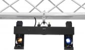2 powerful LEDs 37.5 W COB (chip-on-board) cold white (CW) moving lights effects controlled separately