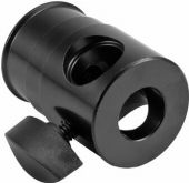 | Maximum load: | Centric 15 kg Asymmetric 10 kg | | Attachment system: | Dual flange: 2x TV spigot mini Ø 16 mm 1x M10 thread | | Material: | Steel | | Color: | Black | | Thread: | M10 thread | | Dimensions: | Length: 5 cm Diameter: Ø 3.5 cm | | Weight: | 0.26 kg |  |  |  |  | |