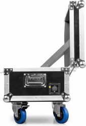 The BeamZ FCC13 Charging Flightcase is the perfect solution for safely transporting and charging BBP48 wireless battery uplight fixtures. This durable, rolling road case with easily handles is the perfect solution for mobile use. When the show is over, simply connect the fixtures to the internal charging module and use the external plug to connect directly into standard wall voltage. The next day, your fixtures are fully charged and ready to go again. Each case holds up to 8 fixtures with enough space for all power cables. - Sturdy flightcase
