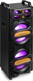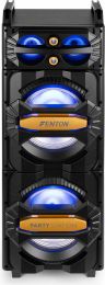 |  | Creating a party out of nowhere has never been so easy with this Fenton LIVE2102 party system. The built-in RGB LED lights behind the speaker grilles add an amazing effect to any party. The LIVE2102 Party Station, which is characterized by advanced Wireless BT Technology, will bring you high-quality music and guarantees a crystal clear signal even when you are far away from the unit. Pairing your phone, tablet or other BT enabled device is super easy! So, if you are looking for high power, big sound and a spectacular light show; LIVE2102 The party starter! Including wired microphone. - Party speaker with USB/SD/BT media player