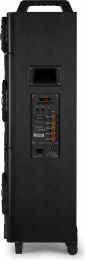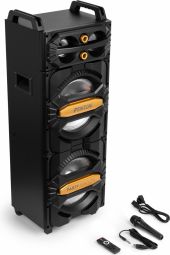 | Product colour | Black | | Playback options | BT streaming, USB, MicroSD, Line input, Microphone (input) | | Input connections | 3.5mm Jack, MicroSD, USB | | Output connections | 6.3mm Jack | | Output power: Max | 800W | | Tweeter type | Piezo | | Diameter tweeter | 1" | | Diameter woofer | 2x 10" | | Magnet type | Ferrite | | Frequency response | 45Hz - 18.000Hz | | Power supply | 100-240VAC 50/60Hz | | Dimensions (L x W x H) | 290 x 350 x 970mm | | Weight (kg) | 11,80 | | Included accessories | Handheld microphone (wired), Power cable | pdf