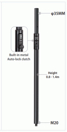 The LST08A is a heavy-duty professional distance rod for multipurpose use. The unique mechanism due to its auto-lock and air cushion system can be used to safely raise and lower the 2-piece designed tube, even while there is a speaker or something else fitted to it. The tube is suitable for all kind of speakers and light effects with standard 35mm diameter pole mounts and can be combined with different types of baseplates.