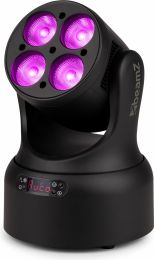 | Product colour | Black | | Colour temperature | 2500K - 8000K | | Light source | 4-in-1 LED | | Colours | Red, Green, Blue, White | | LED power (single LED) | 20W | | Quantity of LEDs | 4 | | Beam angle | 23° | | Field angle | 39° | | Illuminance | 11.336 lx @ 1m | | Head movement: Pan | 540° | | Head movement: Tilt | 270° | | Flash rate per second | 1 - 30Hz | | Modes | Automatic programs, DMX, Master/Slave | | RDM | Yes | | DMX channels | 19, 20 | | DMX connection | 3-pin XLR | | Display | LED | | IP rating | IP20 | | Cooling | Temperature controlled fan | | Power plug | IEC | | Power consumption | 1.665 - 0.782A | | Power supply | 100-240VAC 50/60Hz | | Dimensions (L x W x H) | 170 x 170 x 240mm | | Weight (kg) | 2,84 | | Included accessories | Mounting bracket, Power cable | pdf