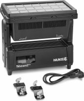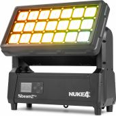 |  | The beamZ Nuke4 is a high-output motorized strobe and beam fixture designed for large-scale outdoor productions, festivals and architectural lighting. Featuring a powerful dual-layer LED system, the Nuke4 combines intense strobe flashes, deep colour mixing and sharp beam effects in one rugged IP-rated housing. The top LED plate delivers fast, punchy strobe and pixel effects, while the high-power bottom plate produces massive beams and colour washes. Thanks to its motorized tilt, the Nuke4 adds dynamic movement, allowing sweeping light effects and animated chases that bring energy and depth to any show. Built for professional use, the Nuke4 supports DMX, Art-Net and sACN control and offers full pixel mapping, smooth dimming and advanced strobe effects. Its weatherproof IP65 construction makes it ideal for permanent outdoor installations as well as touring environments. - Hybrid strobe and beam fixture with motorized tilt