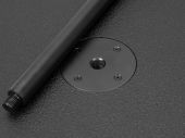 - Black metal grille with acoustic foam