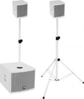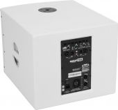 | Power supply: | 230 V AC, 50 Hz | | Power consumption: | 1000 W | | Protection class: | Protection class I | | Output power: | 1 x 500 W RMS 2 x 100 W RMS (8 ohms) 2 x 200 W RMS (4 ohms) | | Power connection: | Mains input via IEC connector (M) mounting version power supply cord with safety plug (provided) | | Device fuse: | 5 x 20 mm, T 5 A fuse replaceable | | Frequency range: | 40 - 160 Hz | | Sensitivity: | 103 dB | | Max. SPL: | 128 dB | | DSP: | Digital signal processor | | DSP presets: | FLAT; DJ; LIVE; VOICE | | Control: | Bluetooth | | Attachment system: | Flange: M20 thread | | Circuitry: | Class D | | Control elements: | Phase reversal switch | | Controls: | Limiter | | Status LED: | Signal, power, limit, fault, DSP presets | | Connections: | Input: line via 2 x 3-pin XLR/6.35mm jack (F) combination socket (mounting version) Input: line via 1 x 3.5 mm jack (stereo) mounting version Input: line via 1 x stereo RCA Output: line via 2 x 3-pin XLR Output: top via 2 x speaker built-in socket (F) | | Input channels: | 1 x stereo via combination socket or RCA or Bluetooth, channel control via rotary dial | | Speaker: | 1 x woofer 12" Voice coil lows 3" | | Type of speaker: | Subwoofer | | Type of construction: | Vented | | Carrying handle: | 2 pc/pcs | | Material: | Birch multiplex | | Color: | White, textured coating, painted | | Dimensions: | Width: 47 cm Depth: 57 cm Height: 40 cm | | Weight: | 22.10 kg | | Speaker cable | | | Cable length: | 3 m |