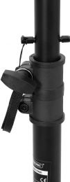 | Maximum carrying capacity: | 14 kg | | Height: | Maximum: 150 cm Minimum: 90 cm with locking pin | | Attachment system: | Ø 25mm | | Type (general stands): | Speaker stand/manual | | Material: | Steel | | Color: | Black | | Transport dimensions: | 82 cm x 12 cm x 9 cm | | Weight: | 1.95 kg |   |  |  |  | |