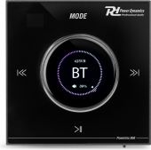 |  | The Powerline series are in wall music systems with a built-in amplifier and a music player. The sleek elegant finish with a touch sensitive panel provides a minimalist look, so your sound is heard and not seen. All cables and connections are securely hidden within the walls out of sight with no tripping hazards. Enjoy your favourite music from many sources, such as BT Streaming, USB, microSD card, FM radio, and line level AUX. The BT streaming function allows you to connect directly to your smartphone, tablet, laptop, etc. The touchscreen and LCD gives you the ability to control all aspects of the system, simply touch and go. It’s also possible to use the included remote control. | Product colour | Black | | Playback options | BT streaming, USB, MicroSD, Line input | | Output power: RMS @ 4 Ohm per channel | 25W | | Output power: RMS @ 8 Ohm per channel | 20W | | Impedance | 4 Ohm, 8 Ohm | | Frequency response | 20Hz - 20.000Hz | | Signal-to-noise ratio | >98dB | | THD | <0.03% | | IP rating | IP20 | | Power supply | 100-240VAC 50/60Hz | | Dimensions (L x W x H) | 86 x 86 x 66mm | | Weight (kg) | 0,30 | | Included accessories | Remote control (wireless), Mounting bracket | pdf