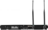 - 2 units can be linked for operation with 8 wireless microphones, link cables included