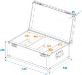 |  | Trunk case | Aluminum profile frames: | 30 mm | | Case handle: | 2 pc/pcs | | Stop hinge: | 2 pc/pcs | | Lock: | Butterfly lock: 2 pc/pcs | | Transport aid: | 4 x rubber feet | | Material: | Plywood multi-layer glued, 9 mm | | Color: | Black, laminated | | Device compartment: | 12 cm x 40 cm x 28 cm | | Accessory compartment: | 10.5 cm x 47 cm x 28 cm | | Dimensions: | Width: 51.5 cm Depth: 52.5 cm Height: 35.5 cm | | Weight: | 10.85 kg |     |  |  |  | |