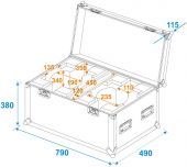 | Aluminum profile frames: | 30 mm | | Case handle: | 4 pc/pcs | | Stop hinge: | 2 pc/pcs | | Lock: | Butterfly lock: 2 pc/pcs | | Use of brands: | Branded hardware | | Material: | Birch multiplex, 7 mm; birch multiplex | | Color: | Black, laminated; dark brown, laminated | | Middle compartment: | 12 cm x 45 cm x 35 cm | | Device compartment: | 19 cm x 45 cm x 34 cm | | Inside dimensions: | 45 cm x 35 cm | | Dimensions: | Width: 79 cm Depth: 50 cm Height: 49 cm | | Weight: | 15.60 kg |     |  |  |  | |
