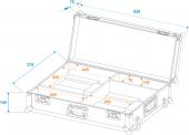 | Maximum load: | 25 kg | | Aluminum profile frames: | 25 mm | | Case handle: | 3 pc/pcs | | Stop hinge: | 2 pc/pcs | | Lock: | Butterfly lock: 2 pc/pcs | | Transport aid: | Trolley | | Use of brands: | Branded hardware | | Material: | Birch multiplex, 6.5 mm | | Accessory compartment: | 44 cm x 7 cm x 13 cm | | Device compartment: | 36 cm x 25.5 cm x 13 cm | | Inside dimensions: | 86.5 cm x 32.5 cm x 13 cm | | Weight: | 10.10 kg |