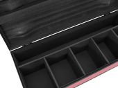 | Maximum load: | 100 kg | | Aluminum profile frames: | 30 mm | | Case handle: | 4 pc/pcs | | Stop hinge: | 2 pc/pcs | | Lock: | Butterfly lock: 2 pc/pcs | | Transport aid: | 4 x castors with 2 locking brakes 4 x built-in stacking trays in the cover | | Material: | Plywood multi-layer glued, 7 mm | | Color: | Red, laminated | | Accessory compartment: | 98.5 cm x 12.5 cm x 20 cm | | Device compartment: | 18.5 cm x 24 cm x 20 cm | | Inside dimensions: | 92.5 cm x 36.5 cm x 20 cm | | Dimensions: | Width: 104 cm Depth: 43 cm Height: 41 cm | | Weight: | 18.50 kg |     |  |  |  | |