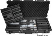 |  | Carrying case | Maximum load: | 50 kg | | Case handle: | 3 pc/pcs | | Lock: | Spring lock: 8 pc/pcs with shut-off function | | Transport aid: | Trolley | | Material: | Plastic | | Color: | Black | | Device compartment: | 109 cm x 8 cm x 7.5 cm | | Middle compartment: | 50 cm x 42 cm x 8 cm | | Dimensions: | Length: 117.5 cm Depth: 52 cm Height: 21 cm | | Weight: | 11.40 kg |