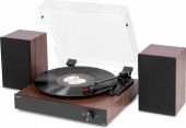 | Product colour | Wood | | Playback options | BT 5.4 streaming, Vinyl | | Input connections | RCA | | Output power | 60W | | Power supply | 100-240VAC 50/60Hz (12V Adapter) | | Dimensions (L x W x H) | 350 x 300 x 115mm (Record player) 130 x 130 x 202mm (Speaker) | | Weight (kg) | 4,47 | | Included accessories | Adapter for singles, Power adapter | pdf