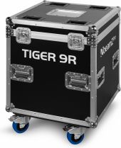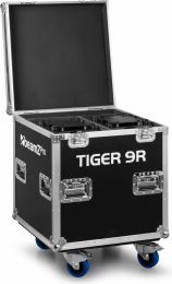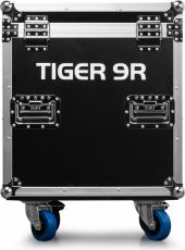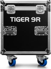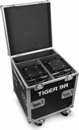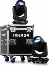 |  | The Tiger 9R is a powerful moving head that generates impressive light output with its 9R 260W high-intensity discharge lamp. This versatile moving head features a comprehensive range of effects, including colour mixing, a frost effect, various gobos and a prisms, giving users precise control over their lighting designs. The Tiger 9R includes a gobo wheel equipped with 14 patterns plus an open position and a colour wheel with 14 colours plus an open position, offering endless creative possibilities. The possibilities are further expanded by the motorized rotating prisms with 8 and 48 facets, allowing the creation of fascinating and dynamic light displays. Operating seamlessly in DMX or stand-alone mode, the Tiger 9R offers flexibility in set-up and operation. Designed for simplicity and ease of use! This is a kit of 2 moving heads delivered in a built-to-fit flightcase. - 260W 9R High Intensity discharge bulb