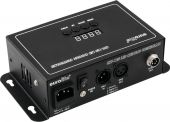 | Power supply: | 100-240 V AC, 50/60 Hz | | Power consumption: | 15.00 W | | Protection class: | Protection class I | | Power connection: | Mains input via IEC connector (M) mounting version power supply cord with safety plug (provided) | | Flash rate: | 1 - 12 Hz | | DMX channels: | 8 | | DMX input: | 1 x 3-pin XLR (M) mounting version | | DMX output: | 1 x 3-pin XLR (F) mounting version | | Control: | Stand-alone; DMX; sound to light via microphone | | Display type: | LCD display | | Dimensions: | Width: 22 cm Depth: 12.5 cm Height: 6.5 cm | | Weight: | 1.06 kg |  |