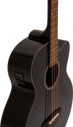 | Battery: | 1 x 9.0 V E block 6F22 zinc carbon built-in | | Version: | Right hand version | | Neck: | Nato, Fingerboard: walnut 21 frets | | Body: | Sapele | | Scale length: | 865 mm | | Nut width: | 43 mm | | Bridge: | Maple | | Number of strings: | 4 | | Equalizer: | 1 x 3-band tone control | | Binding: | Front side and back side white, pinstripe | | Top: | Spruce | | Hardware: | Chromium-plated | | Color: | Black, high-gloss, painted | | Weight: | 2.50 kg |   |  |  |  | |