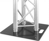 De universelle UBP-basisplader kan bruges til trekantede, firkantede og rektangulære BeamZ-trussystemer. Hver plade har to forstærkede greb, hvilket gør dem nemmere at håndtere.