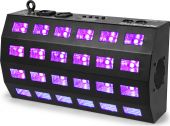 A strong and powerful LED Flood fitted with Ultraviolet LEDs. The LEDs are divided into 4 separately controllable segments giving you the possibility to create runway effects. Because the LEDs are positioned in a slight angle you can create a very wide spread of light and cover a large area. Equipped with IEC in/out for daisy chaining multiple units together.