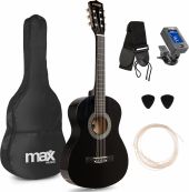 |  | Den perfekte måde for et barn, at komme i gang med at spille guitar! SoloArt Klassisk Spansk Guitar Pakke 36" er en komplet begynder guitarpakke med alt som et barn skal bruge for at komme i gang med at spille guitar. Den indeholder en klassisk guitar i 36" - 3/4 junior-størrelse med nylonstrenge, der er specielt designet til begyndere for at gøre det virkelig sjovt at spille guitar. Basswood-kroppen er i kombination med ahorngribebræt starten på en perfekt lydoplevelse. Denne pakke inkluderer også ekstra strenge, guitarrem, digital tuner, 2 plektre og en nylonbag til at transportere din guitar. - 36" klassisk guitar (3/4 junior-størrelse, anbefales fra 6-11 år)