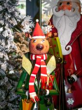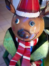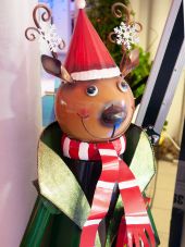 Handcrafted reindeer figure made of metal, color finish In Handarbeit hergestellte Rentierfigur aus Metall, farbig lackiert - The black boots have shiny bootlegs, the toe caps are hammered
