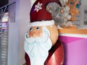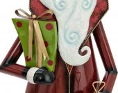 Handcrafted Santa Claus figure made of metal, with gift and bell, color finish In Handarbeit hergestellte Santa-Claus-Figur aus Metall, mit Geschenk und Glocke, farbig lackiert - The black boots have shiny bootlegs, the toe caps are hammered