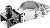 Universal compact aluminium slimline half coupler for pipe and truss mounting fixtures. For easy tilting of the mounting system to transport the light effect in a flight case. High-strength aluminum construction.